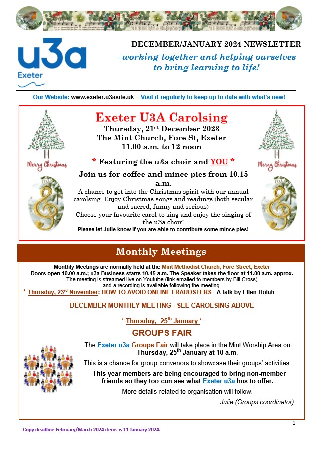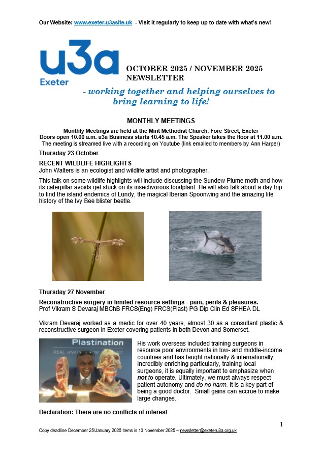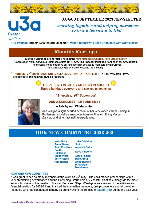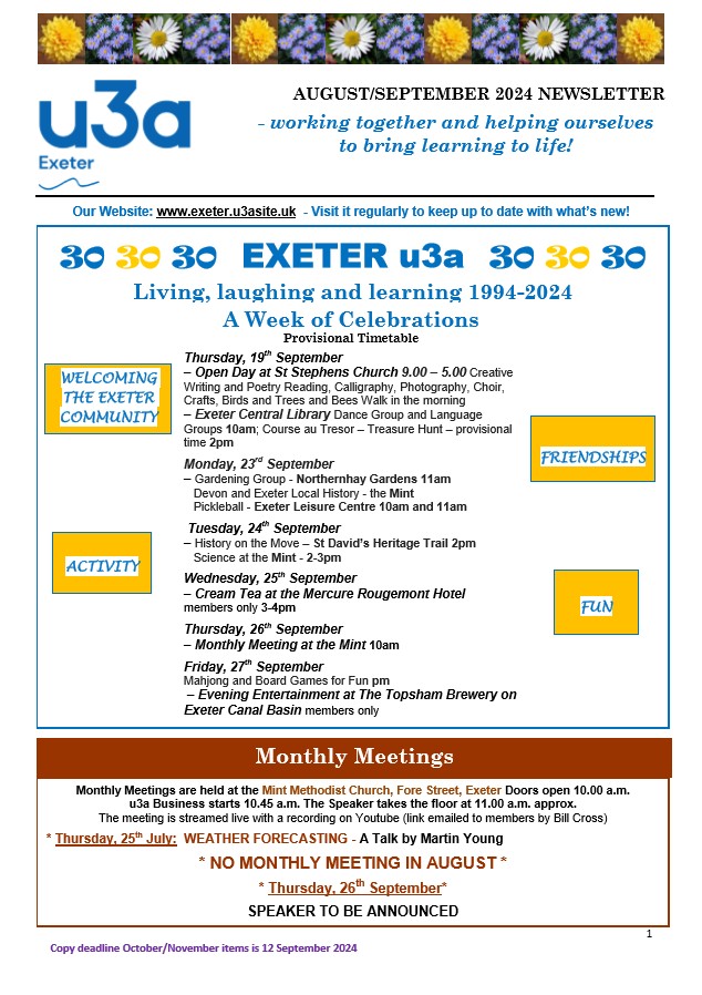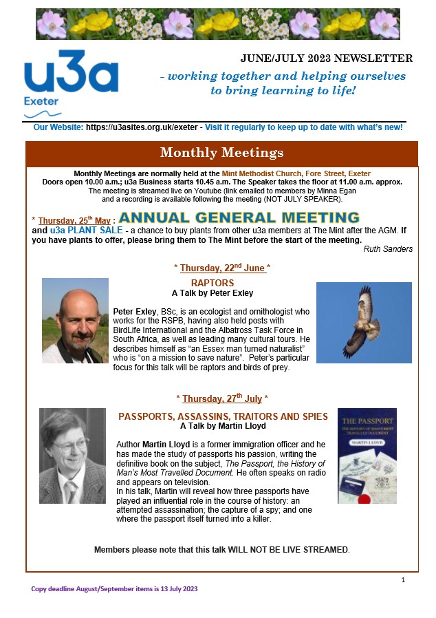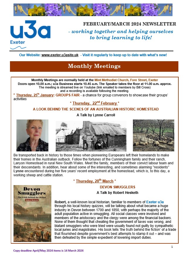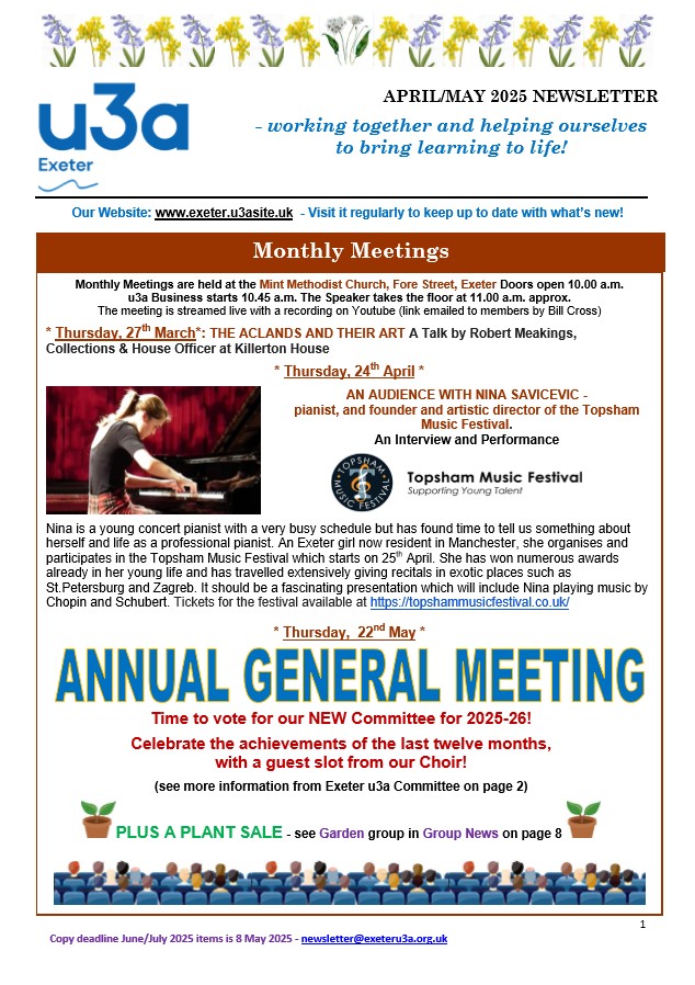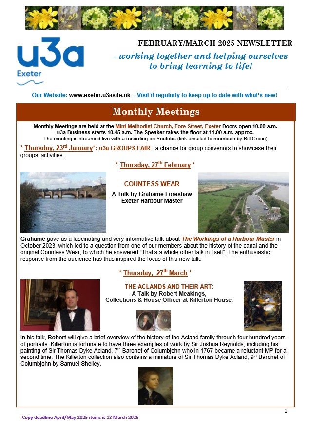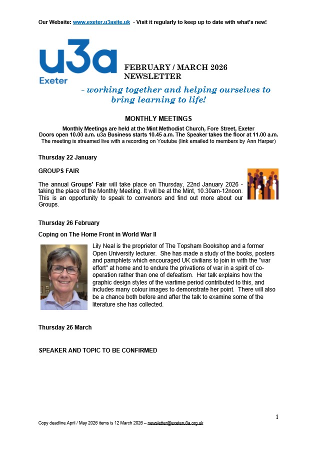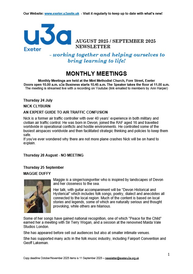 Exeter u3a Newsletters